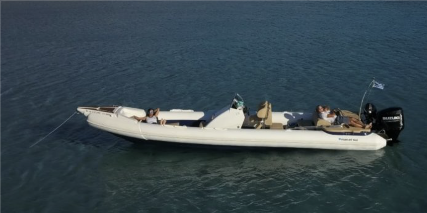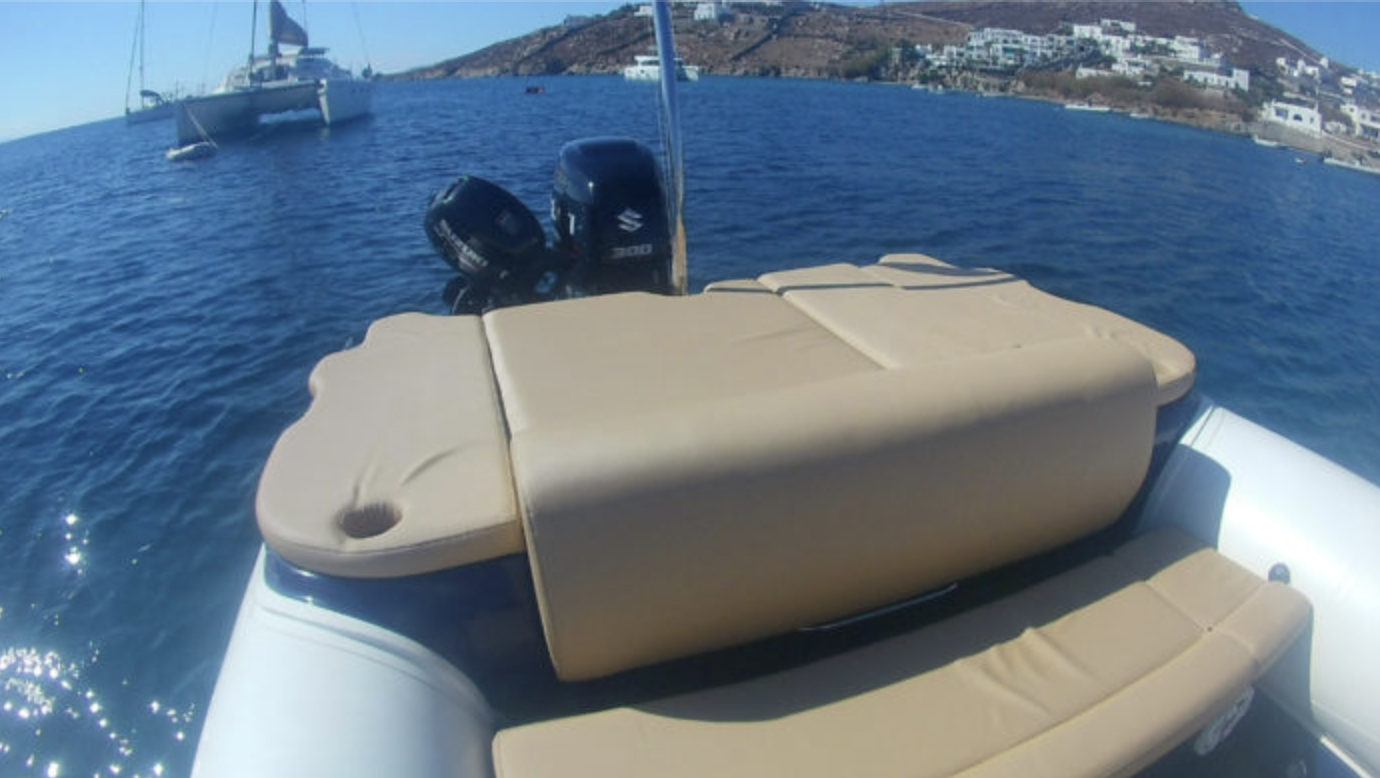 We highly recommend our 31 FT Rigid Inflatable Boat with its’ Suzuki Outboard 300 HP for any client who is just wanting to get out on the Grecian waters. This vessel is available for either half day or full day charter options. This RIB features a high-powered engine that has a cruising speed of 25 knots and allows you to island hop with speed. It has the carrying capacity for up to 9 guests on board. Snorkel, island hop and relax the day away on this 31 FT Rigid Inflatable Boat.