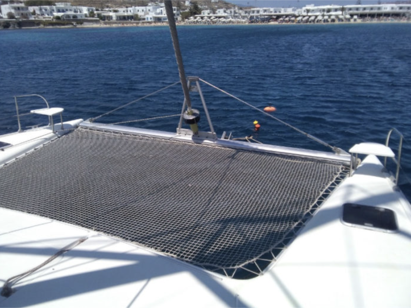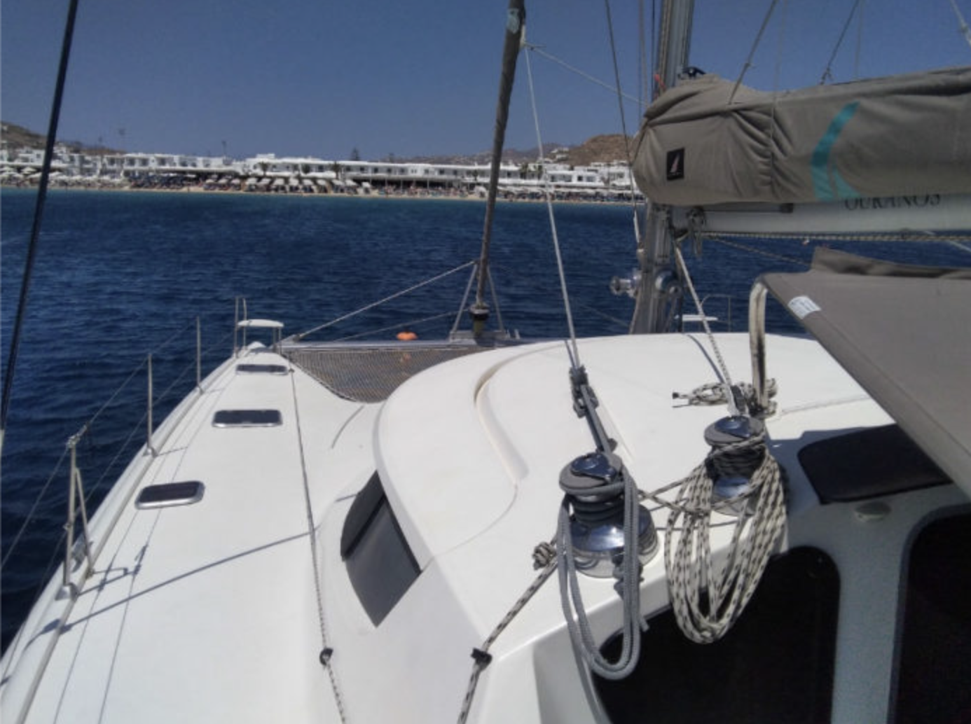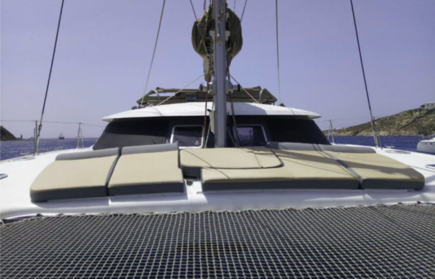 Our impressive 46 FT Bahia Sailing Catamaran has the carrying capacity for up to 20 guests for Day charters and up to 10 guests for overnight charters. Making this the perfect vessel for hosting larger groups. This vessel boasts its’ 4 double Cabins (consisting of 2 single cabins and 2 pilot berths) with ensuite bathrooms. This catamaran also features a large sun lounging area on its’ deck which is perfect for relaxing and enjoying the Grecian sun. When you book this vessel for day charters, it does come with a private menu in which your group can choose the food of their liking as well as open bar beverage options. All food is prepared by a private chef onboard. Swim, snorkel and relax your days away on our beautiful 46 FT Sailing Catamaran.