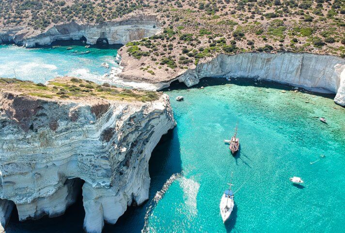 Located in the southern part of Cyclades Island complex, Milos is a volcanic island with more than 40 exotic beaches. This timeless Greek island has beautiful beaches, amazing bays, enchanting beautyand delicious food. The island boasts the most pristine crystal-blue waters. With sweeping hillsides and gleaming white rock formations on one side, white-washed houses and blue churches on the other side, Milos is worth visiting during your Greece vacation. The best way to visit and explore Milos is to charter a luxurious yacht. At Mykonos Yacht Charters, we provide customized charter packages and superior services to exceed your expectations. Before planning your itinerary, check out our travel guide to Milos.