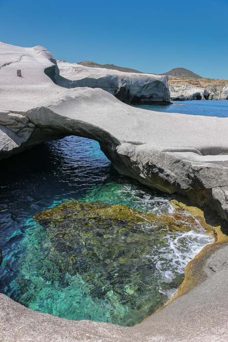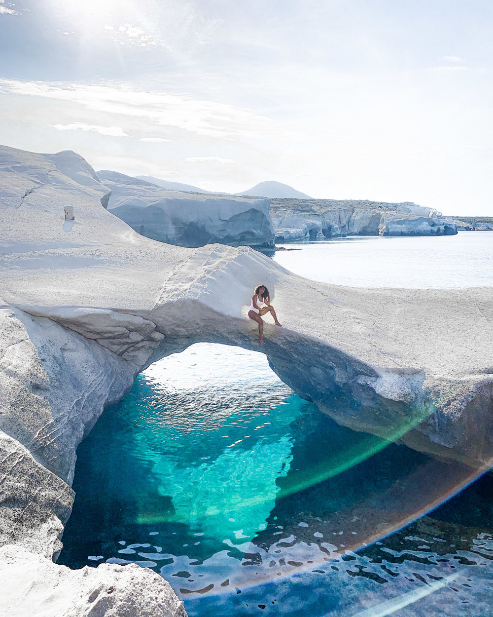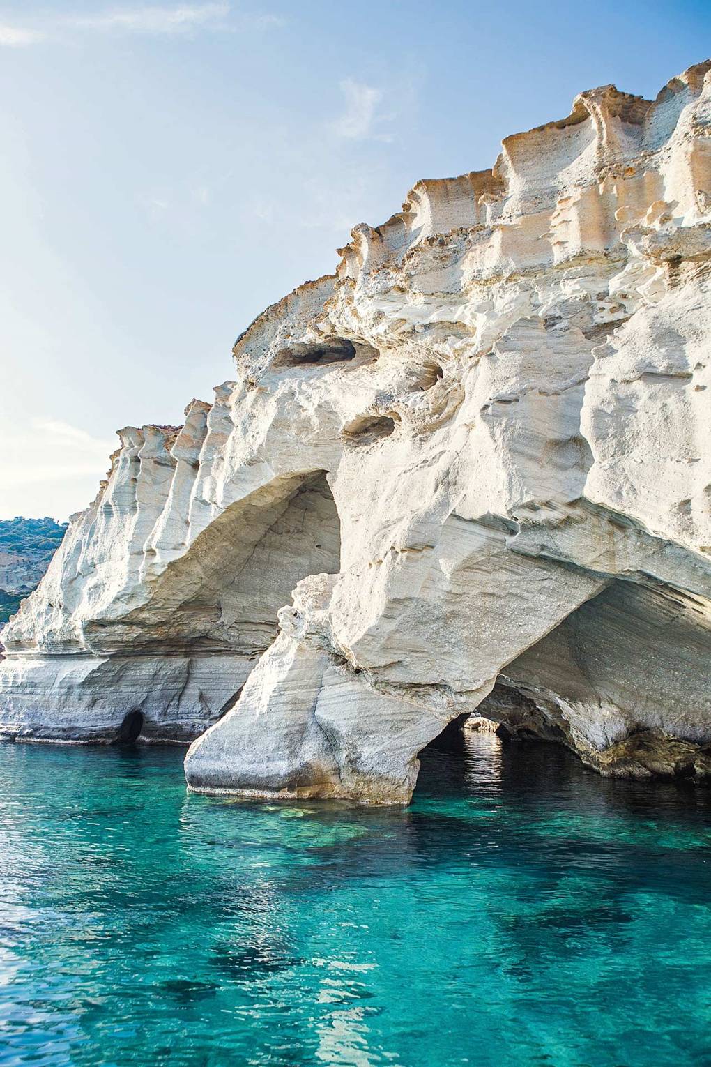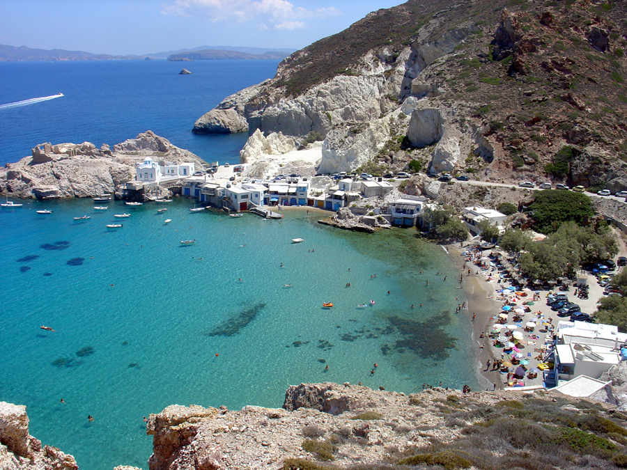 - Sarakiniko: It is the most photographed beach on Milos because of the white volcanic rocks that create a magnificent contrast with the blue waters.